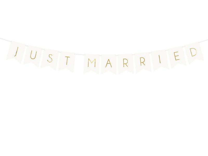Závěsný papírový banner Just Married, bílý, rozměr 15x155cm (zn. PartyDeco)