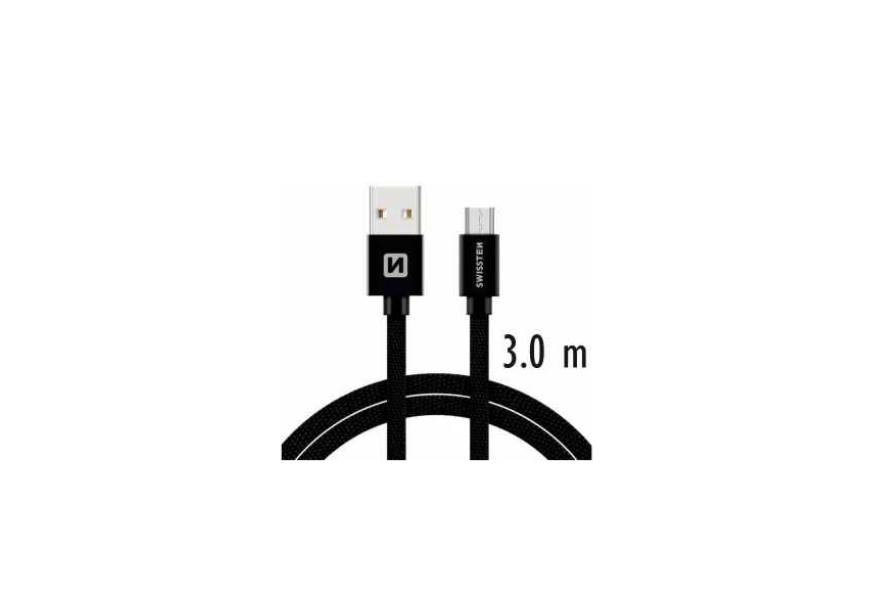 Datový kabel Micro USB v odolném zpracování, délka 3m (zn. SWISSTEN)