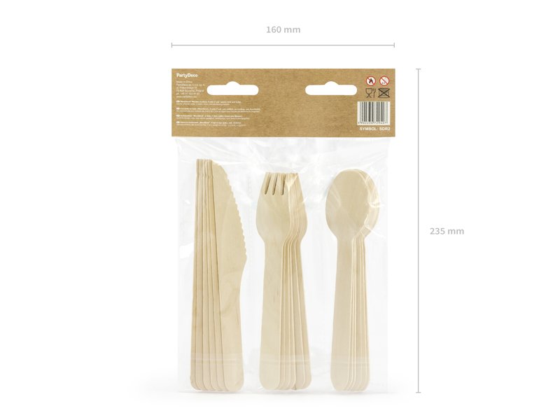 Dřevěné příbory - čistě přírodní bez vzorů, set 18ks (3x6) (zn. PartyDeco)