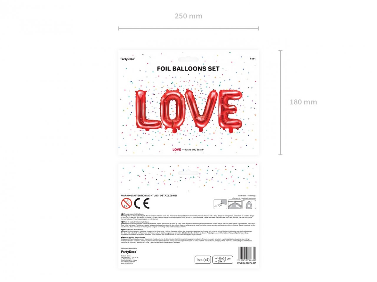 Fóliový nápis LOVE, rozměr 140x35cm, set 4 písmen, červená barva (zn. PartyDeco)