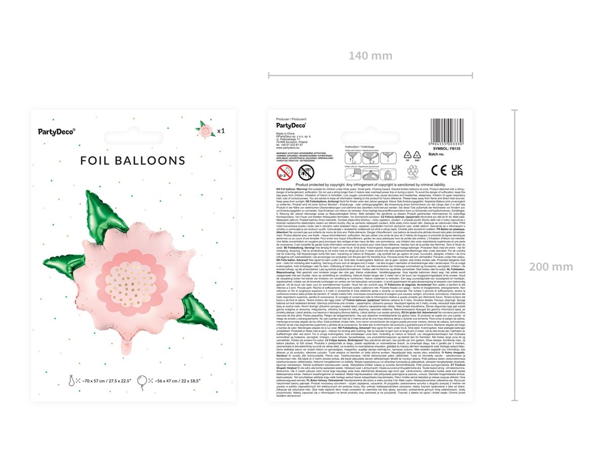 Fóliový balónek KVĚT, zeleno-růžový, rozměr 70x62cm (zn. PartyDeco)