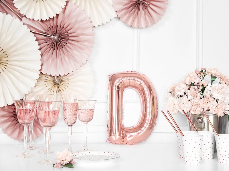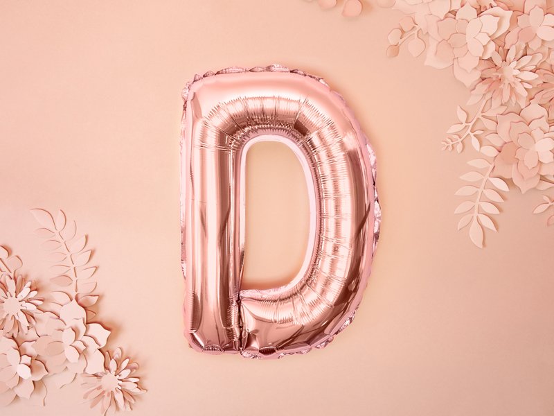 Fóliové PÍSMENO D, rosegold barva, velikost 35cm (zn. PartyDeco)