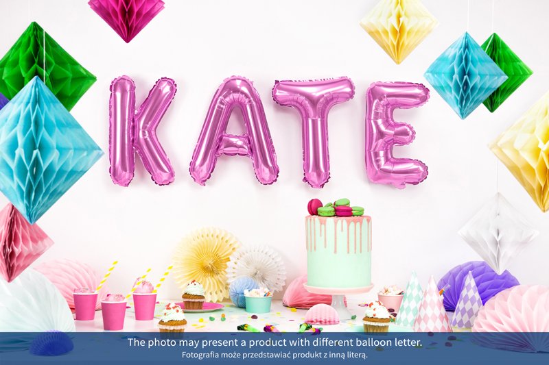 Metalický fóliový balónek Písmeno tmavě růžový, výška před nafouknutím cca 40 cm (16''), výška po nafouknutí cca 35 cm (14''). K naplnění vzduchem. Při nafouknutí heliem se balonek nevznáší.