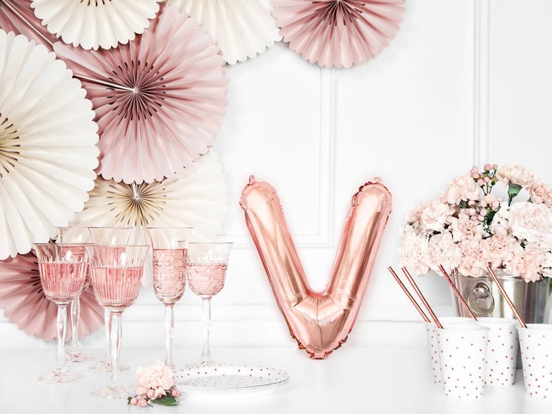 Fóliové PÍSMENO V, rosegold barva, velikost 35cm (zn. PartyDeco)
