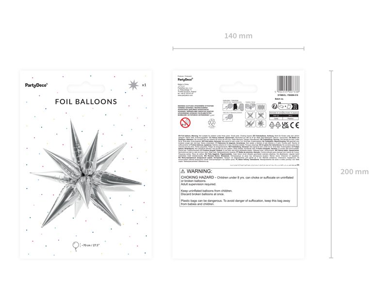 Lesklý fóliový balónek 3D Star, stříbrný, průměr cca 70 cm (27,5''). Sada obsahuje brčko.