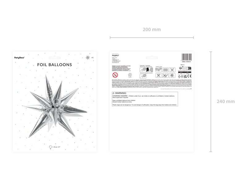 Lesklý fóliový balónek 3D Star, stříbrný, průměr cca 95 cm (37,5''). Sada obsahuje brčko.