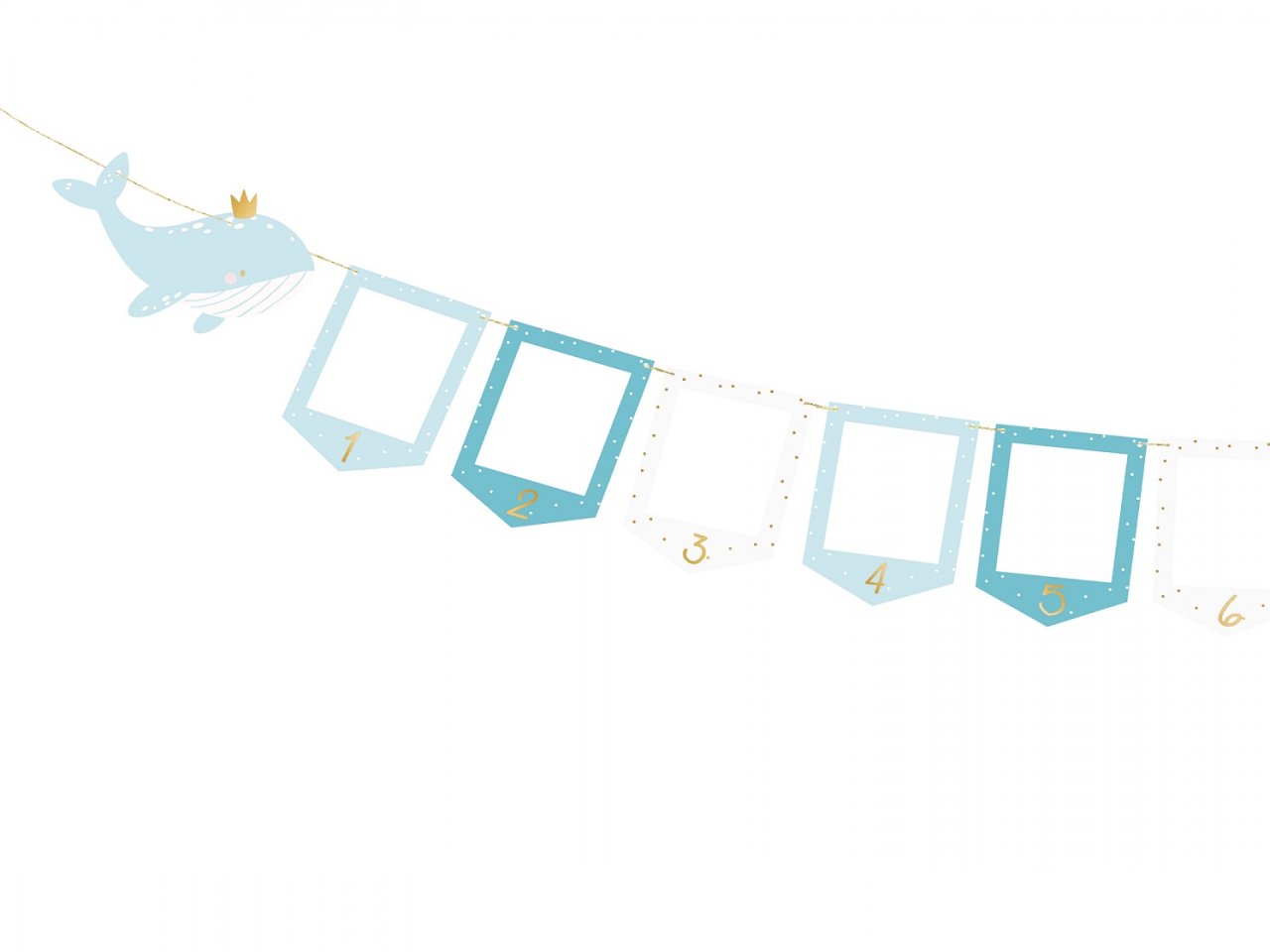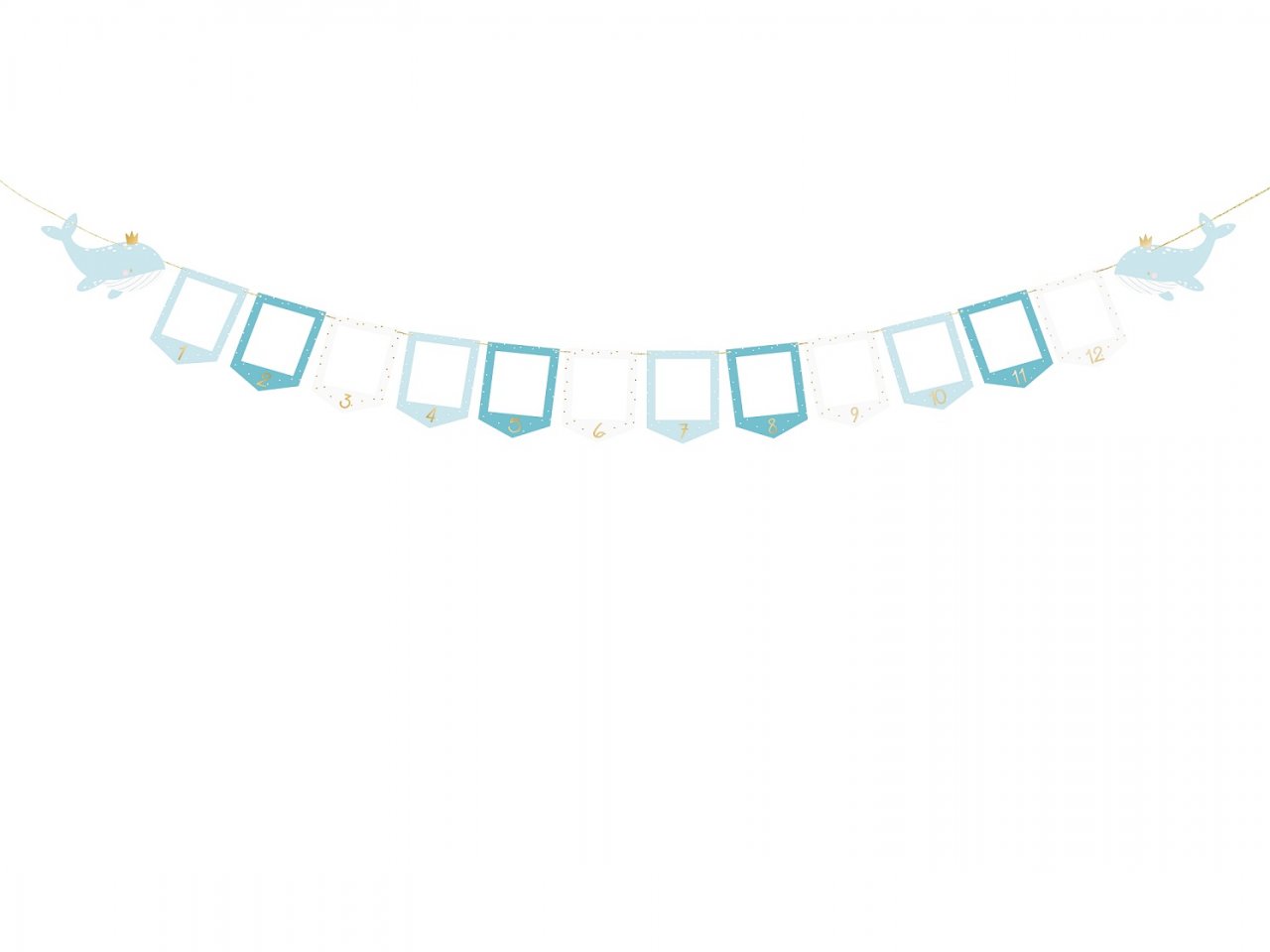 Fotorámečky na girlandě - VELRYBA / chlapeček - mapování po měsících, délka 10.5x15cm (zn. PartyDeco)