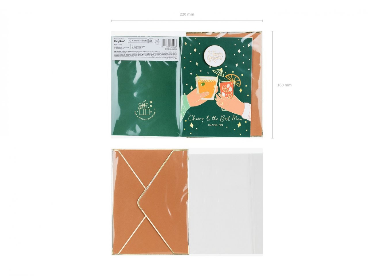 Rozlučkové blahopřání se smalt odznakem Ženich + hnědá obálka se zlatým lemem, rozměr 10.5x15cm (zn. PartyDeco)