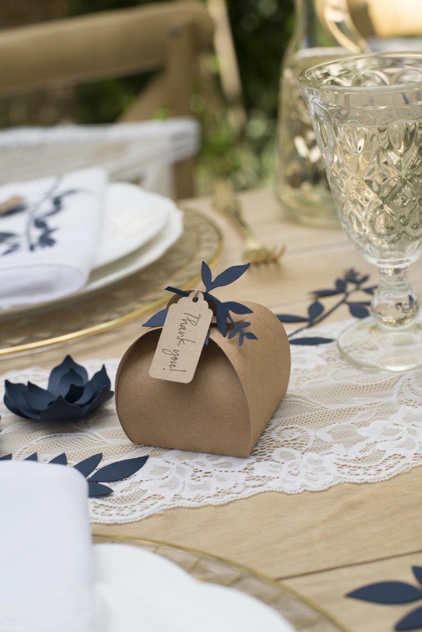Dárkové zakulacené KRAFT krabičky s visačkou, rozměr 6x6x5.5cm - set 10ks (zn. PartyDeco)