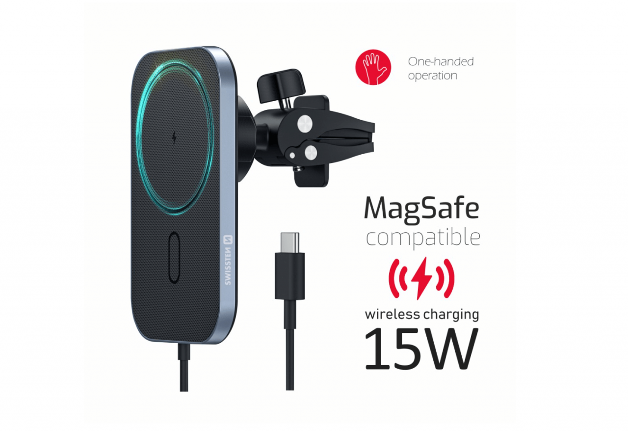 Magnetický držák do ventilace auta s bezdrátovým nabíjením 15W, MagSage compatible (zn. SWISSTEN)
