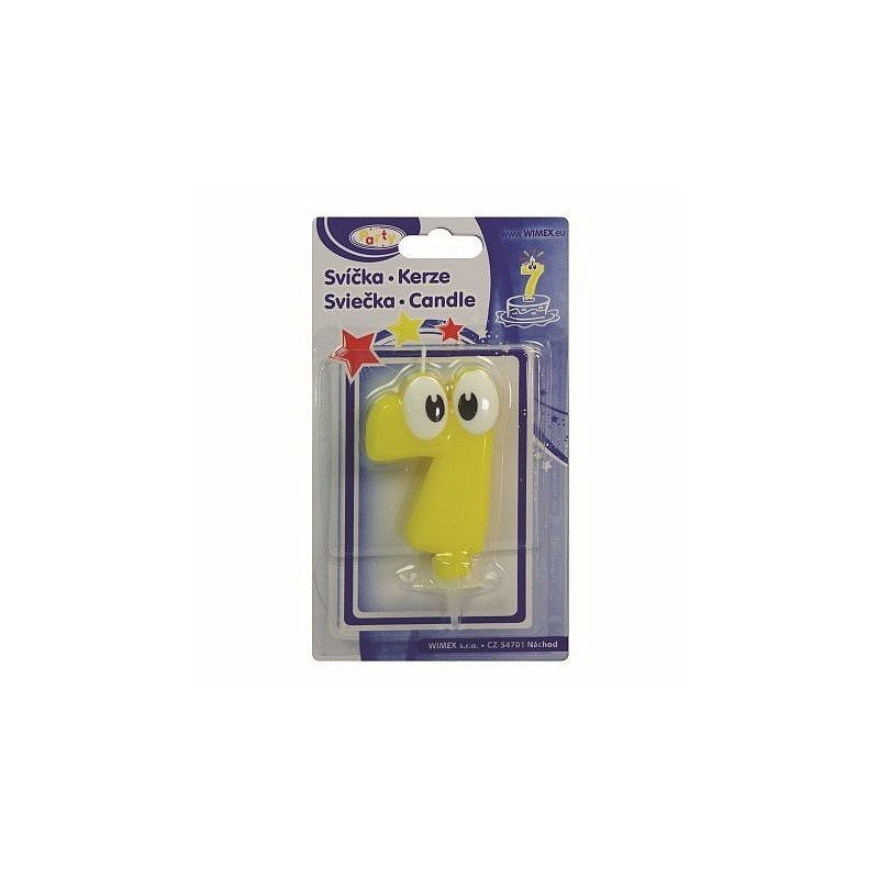 Narozeninová svíčka, ČÍSLICE 7, žlutá s očima a stojánkem (zn. WIMEX)