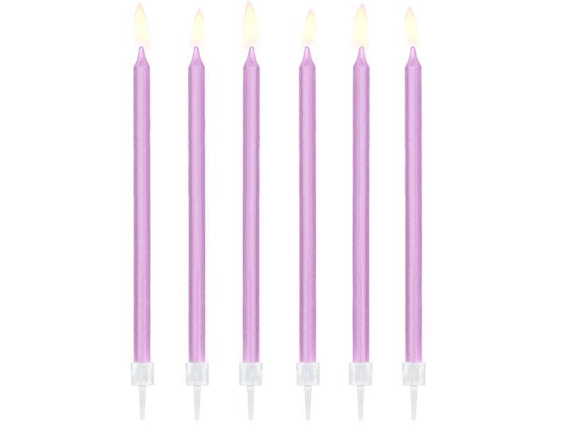Narozeninové svíčky dlouhé úzké, 14cm, fialová barva, set 12ks + držáčky (zn. PartyDeco)