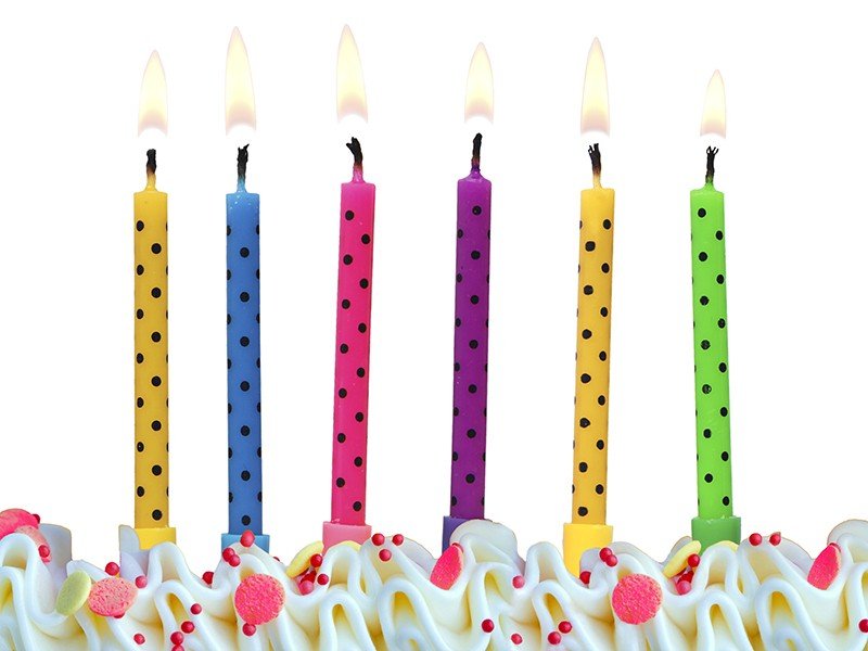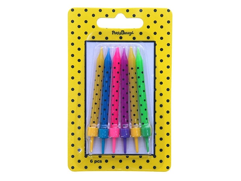 Narozeninové svíčky, barevný mix, puntíky, 6cm - set 6ks (zn. PartyDeco)
