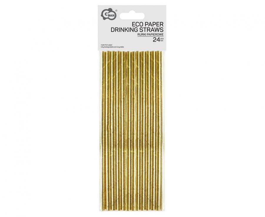 Papírová brčka, zlatá barva, set 24ks (zn. Godan)