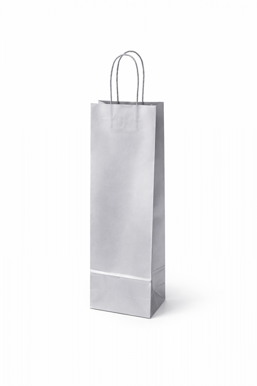 Papírová taška na víno se složeným dnem a krouceným uchem.