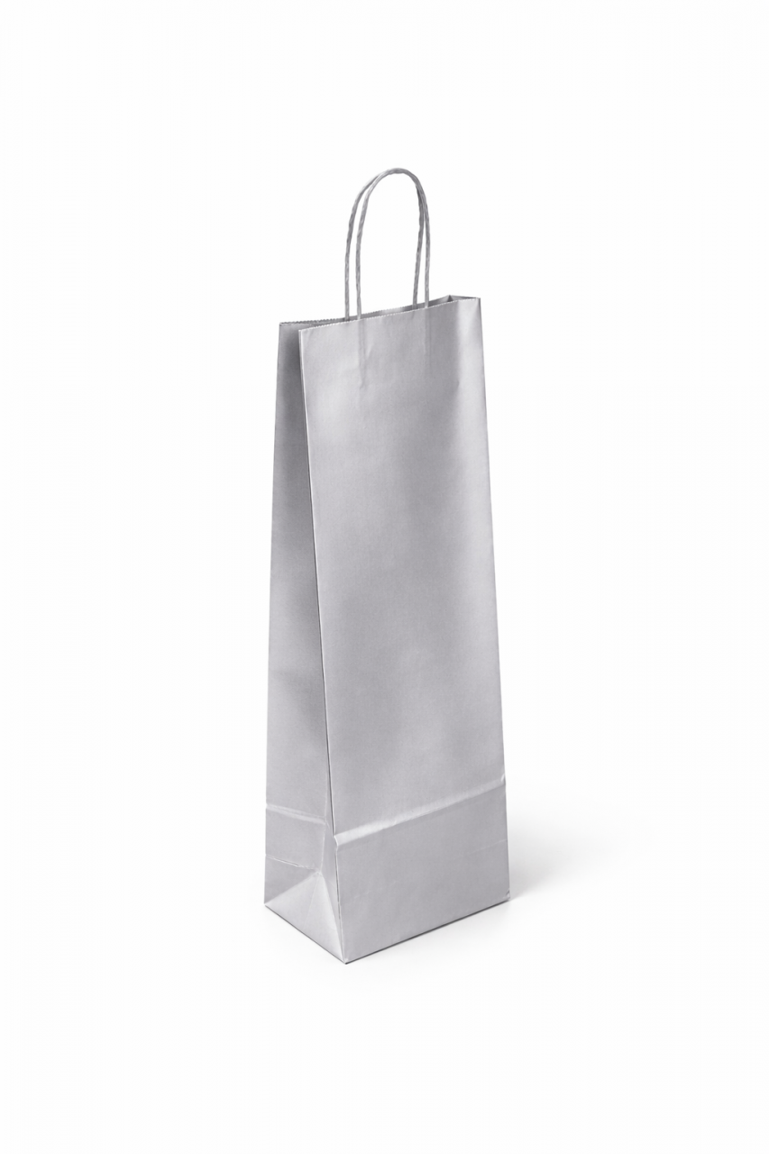Papírová taška na víno, rozměr 14x9x39cm, barva stříbrná