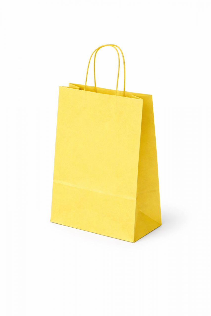 Papírová taška PASTELO - velikost S, rozměr 14x8.5x21.5cm, žlutá barva