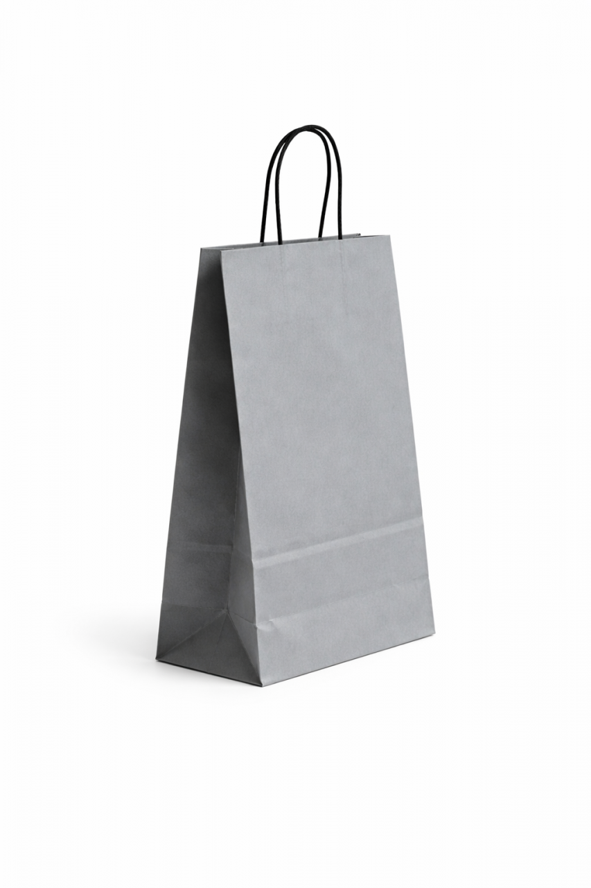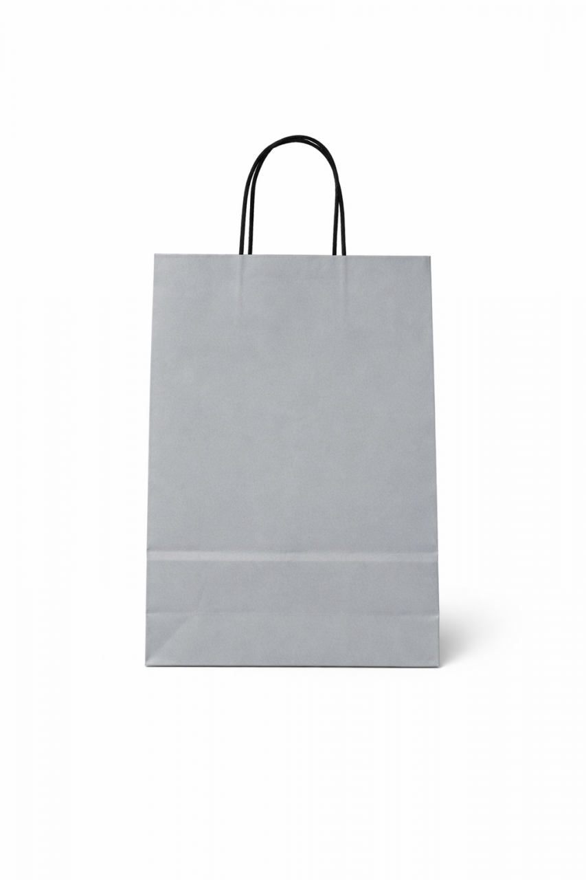 Papírová taška PASTELO - velikost M, rozměr 18x8x24cm, šedá barva