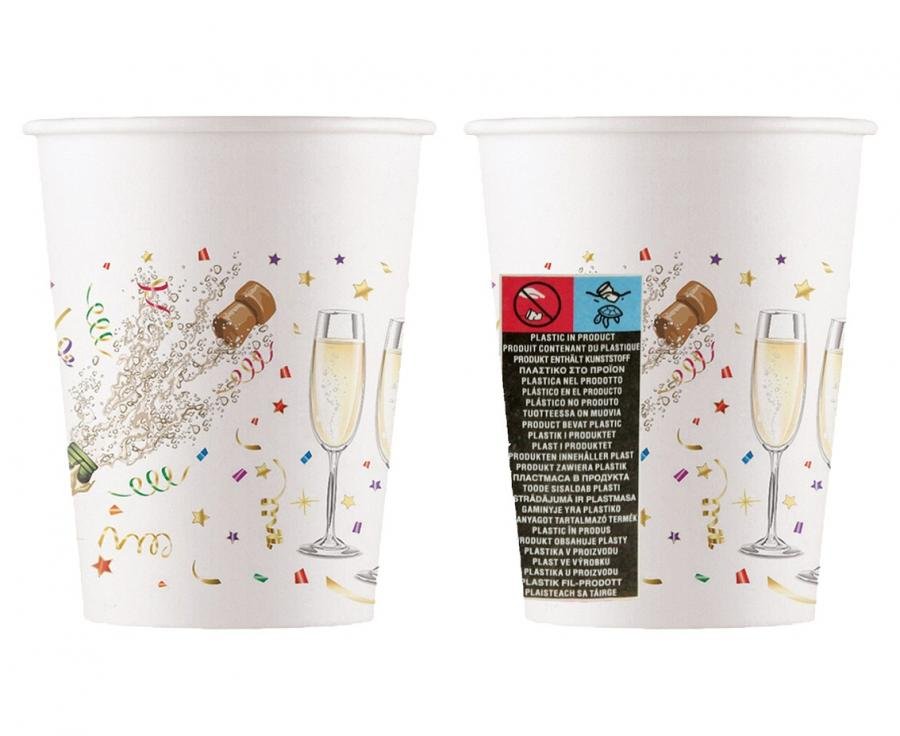 Papírové kelímky Šampus a skleničky, univerzální k oslavě, objem 200ml, set 8ks (zn. Godan)