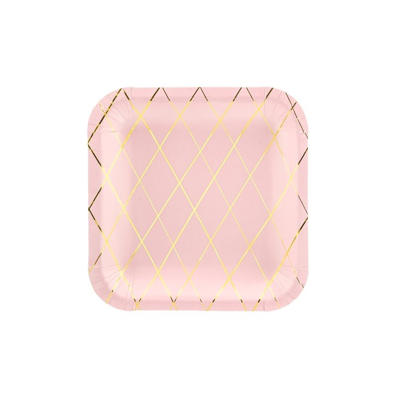 Talířek nejen na dětskou párty. Růžový se zlatou mřížkou.