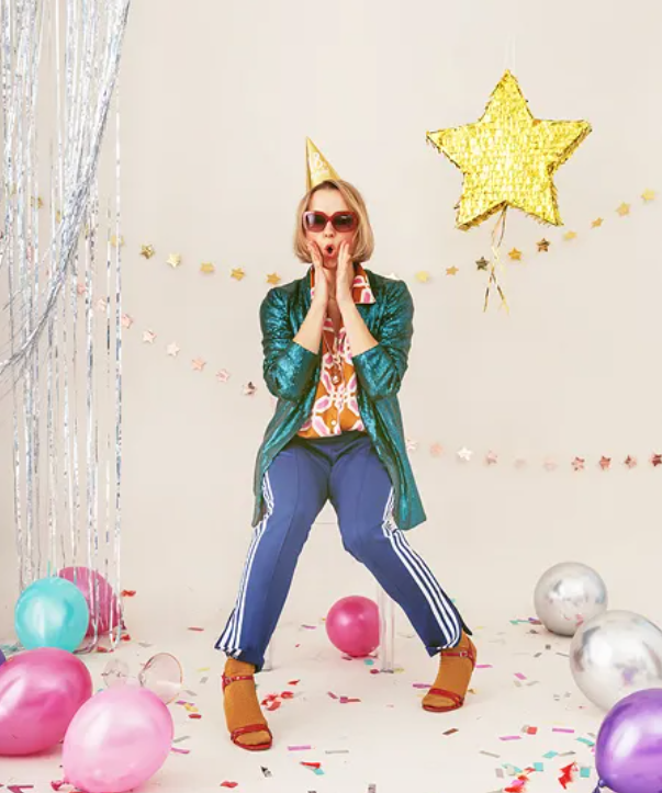 Párty čepice v metalické zlaté barvě s bílým nápisem 18th Birthday!, výška cca. 16 cm, průměr cca. 11 cm.