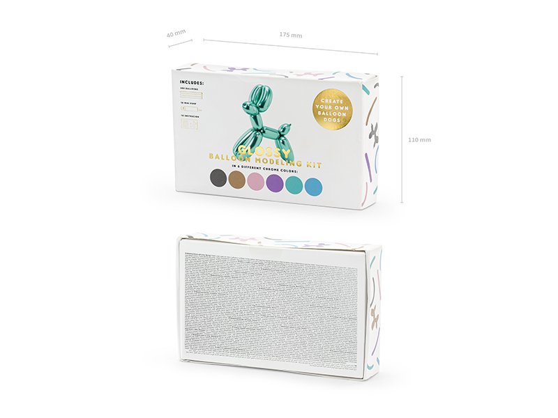 Lesklé modelovací balónky z polymerové hmoty s pumpičkou, různé barvy: modrá, černá, fialová, růžové zlato, zelená, zlatá. Rozměry přibližně 5 x 130 cm. Sada obsahuje pumpičku. Můžete z nich tvarovat nejrůznější zvířátka i věci. V balení 30 ks.