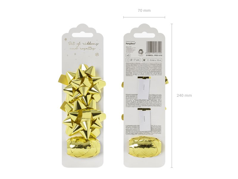 Sada a rozet a stuhy - zlatá metalická barva, set 3ks (zn. PartyDeco)
