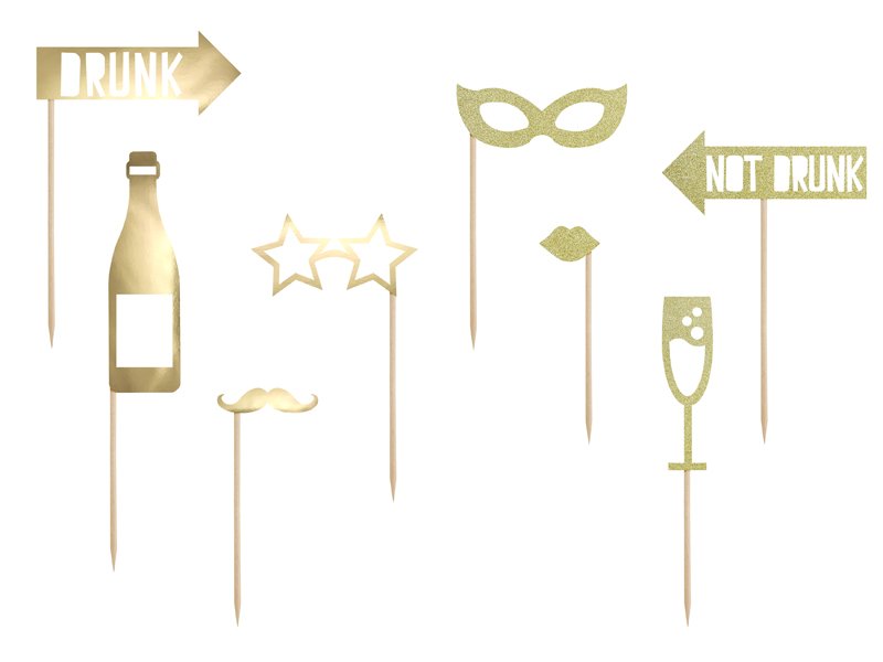 Svatební FOTO set + rekvizity ve zlaté barvě, set 8ks (zn. PartyDeco)