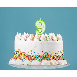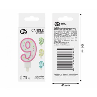 Dortová svíčka, ČÍSLICE 9, barevná s puntíky, velikost 7.5cm (zn. Godan)