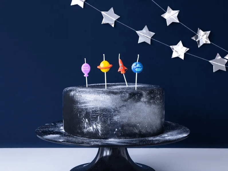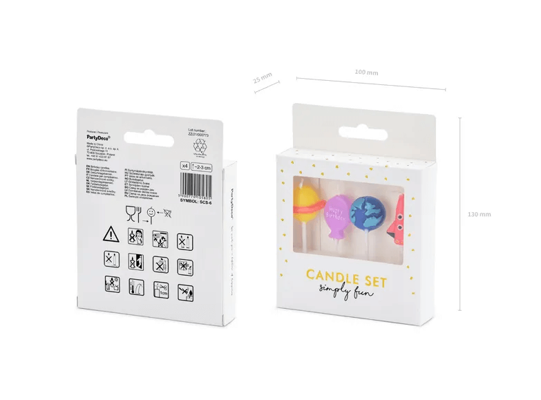 Narozeninové svíčky Vesmír, 2x3cm, set 4ks (zn. PartyDeco)