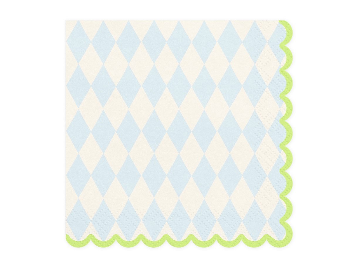 Ubrousky kosočtverce, bílo-limetkovo-tyrkysové, rozměr 33x33cm - set 20ks (zn. PartyDeco)
