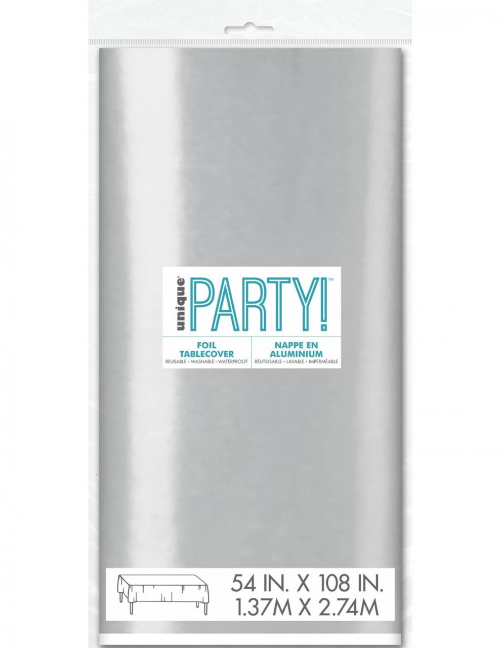 Ubrus fóliový, lesklý, stříbrná barva, rozměr 137x213 cm (zn. UNIQUE)