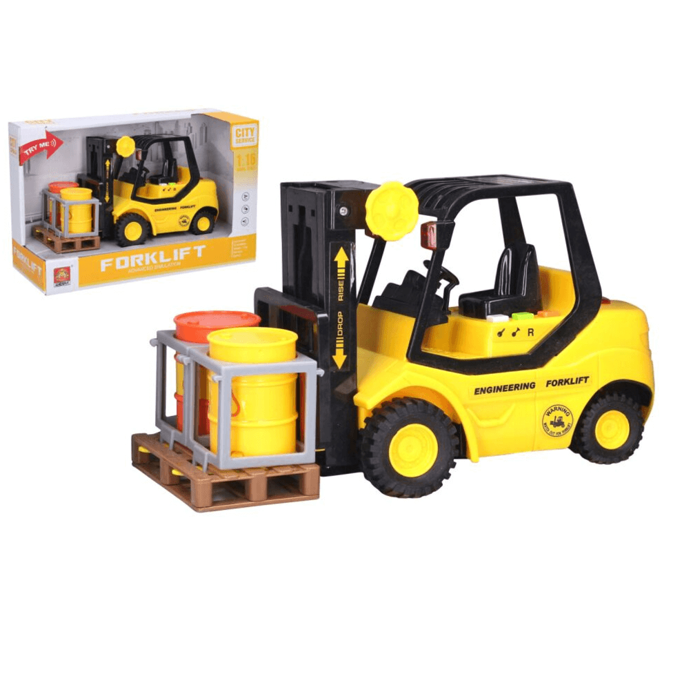 Funkčnost: stiskem tlačítek svítí a vydává zvuky, má pohyblivou přední část pro zdvih přiložené palety.