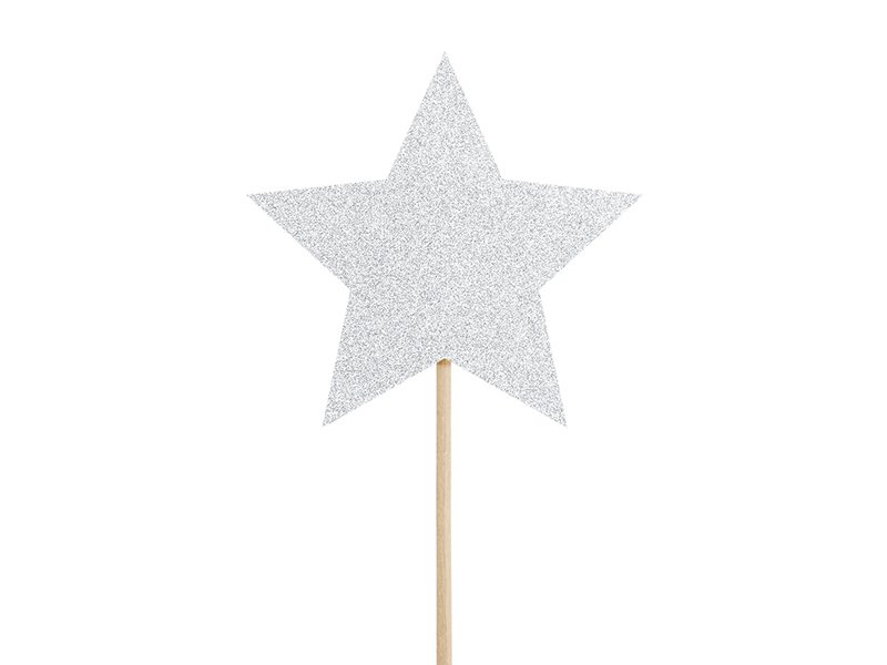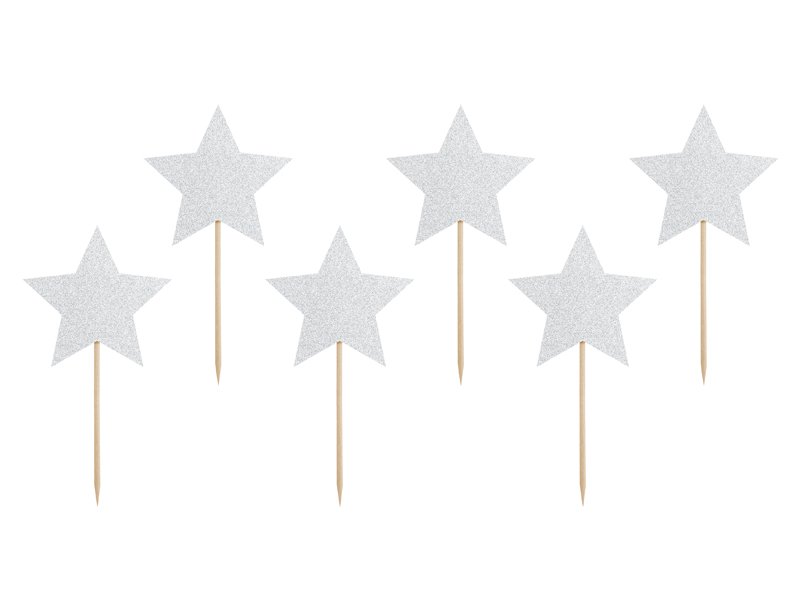 Dortové zápichy / na muffiny - HVĚZDIČKY, stříbrná barva s glitrovým efektem, rozměr 11.5cm (zn. PartyDeco)