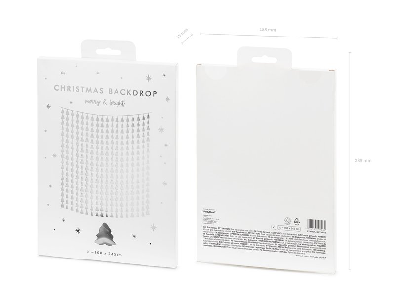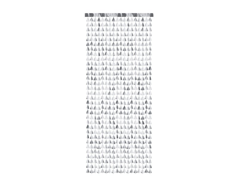 Dekorační fóliový závěs - Vánoční stromečky, stříbrná barva, rozměr 100x245cm (zn. PartyDeco)