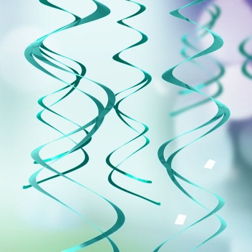 Tyto elegantní tyrkysové závěsné spirály dodají vašemu prostoru jemný pohyb a hravost. Skvělé pro oslavy, svatby nebo letní akce.